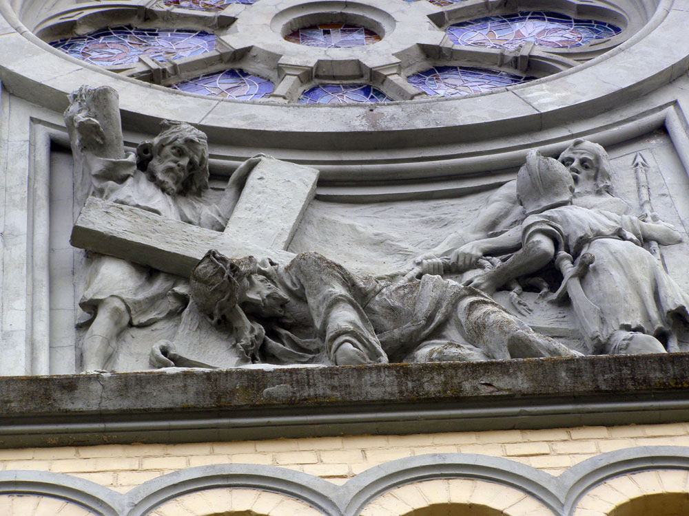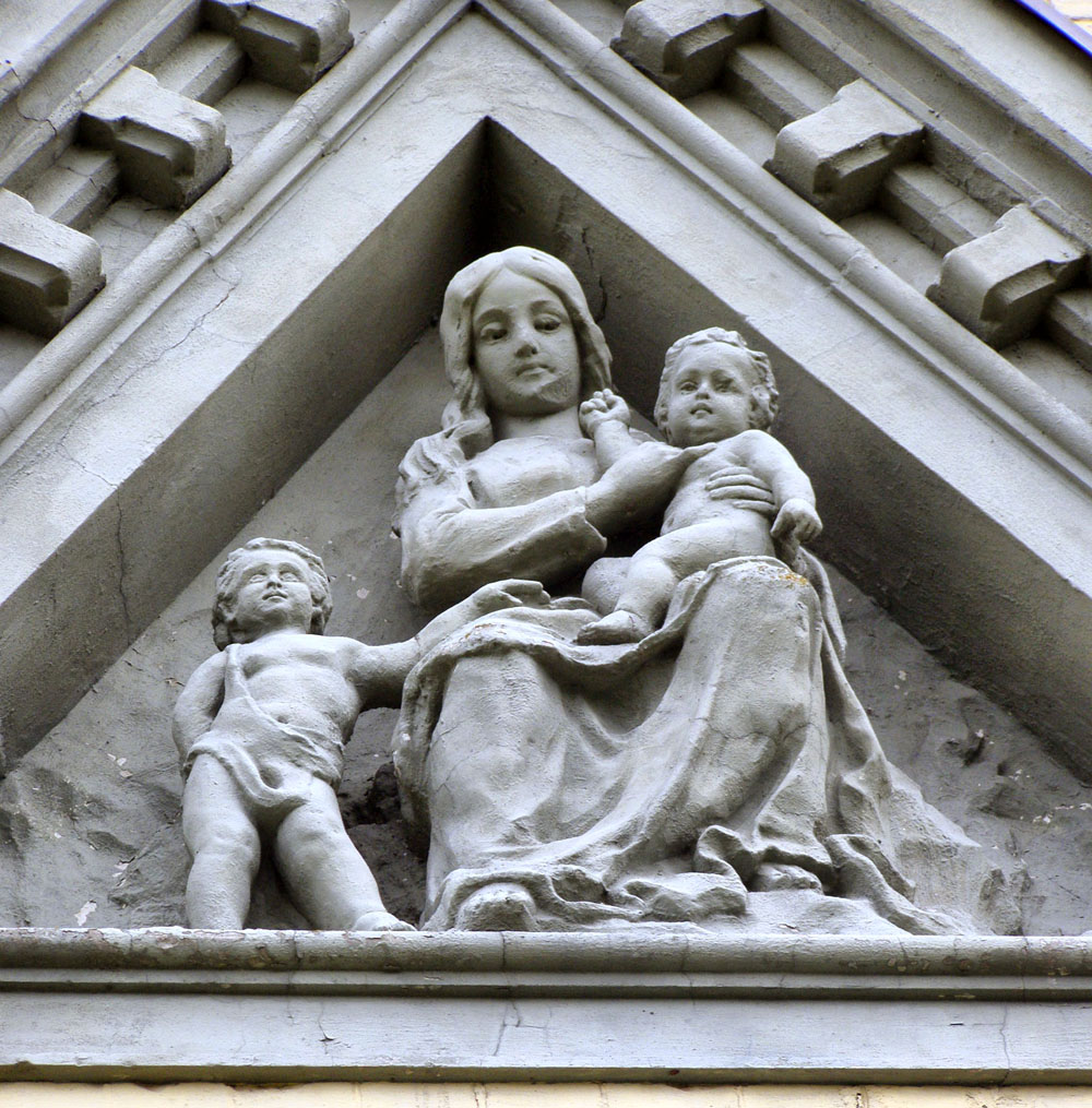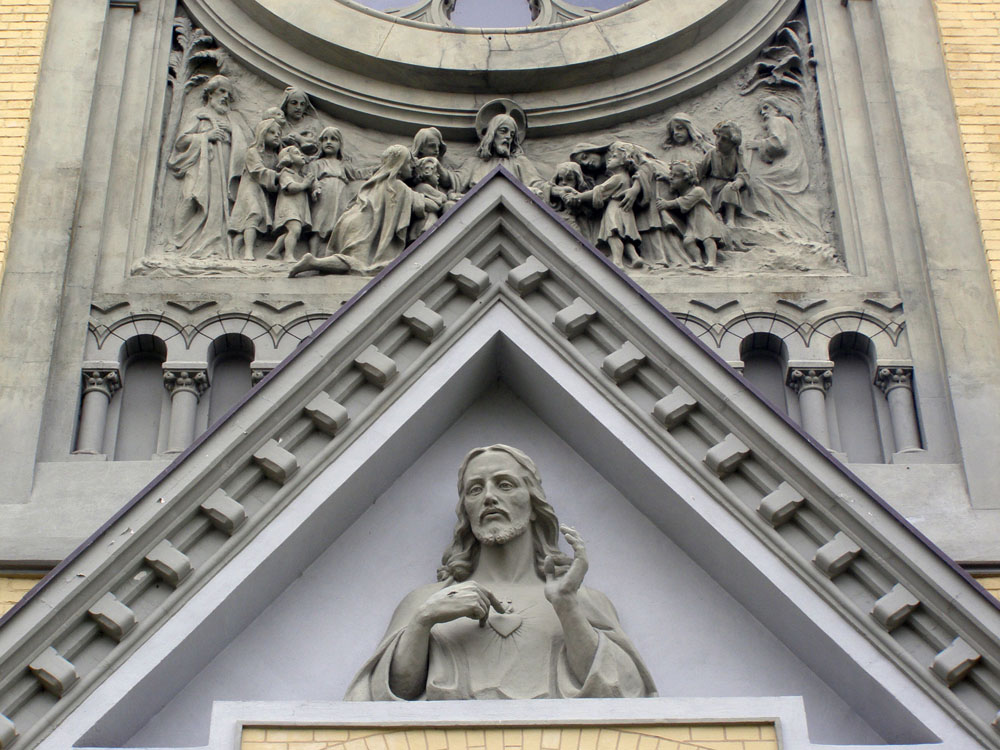 Барельєфи костелу виконані відомим скульптором Еліо Саля (автор скульптур на “Будинку з химерами”)