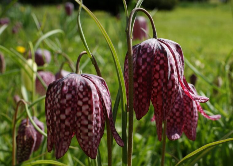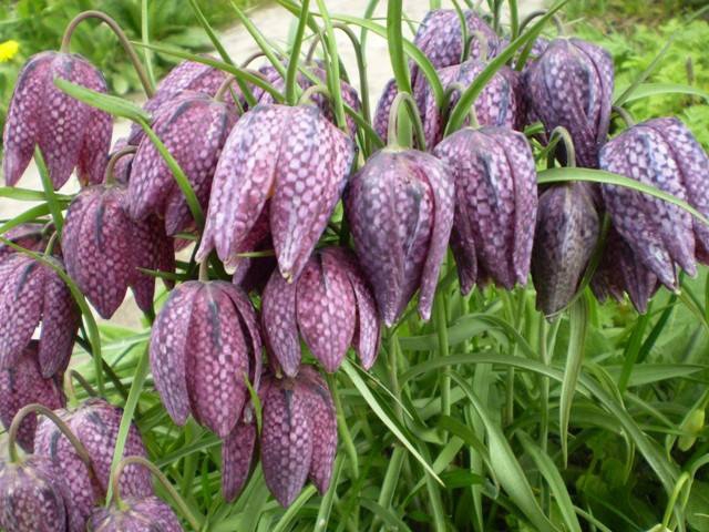Here you can see tulips that are unusual to our eyes. In fact, this is the chess fritillary, commonly referred to as the "wild tulip" or "black tulip."