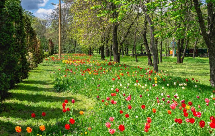 This popular seasonal flower park is rightfully considered the most famous location for tulip flowering in Western Ukraine. Every spring, 200-300 thousand blooming tulips and other spring flowers can be seen here.