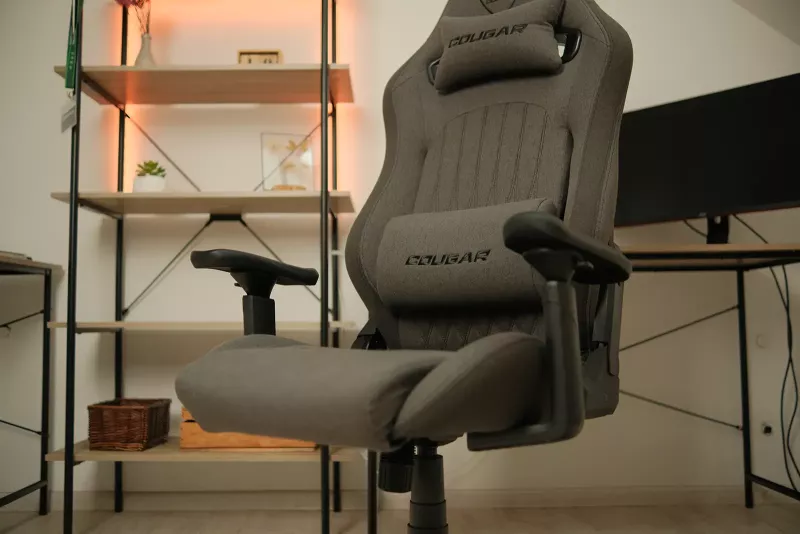 Cougar EXPLORE ROYAL is available in various color options and upholstery materials. We have the ROYAL GRAY F version, made of breathable dark gray fabric. Interestingly, the letter F in the model name stands for Fabric and indicates the fabric upholstery. In this modification, the linen-simulating fabric is very pleasant to the touch. It is harder to clean than eco-leather; however, this covering is more durable, as quality eco-leather can wear out over time. Nevertheless, side inserts made from reinforced fabric would be a good addition.