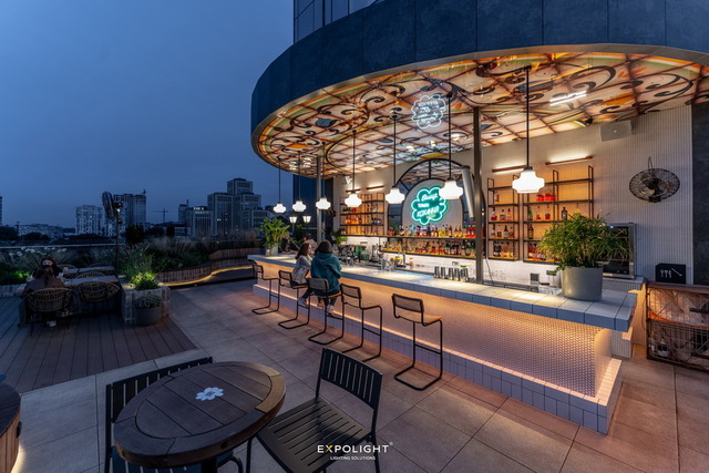 Rooftop by Brooks is a place where people come in Dnipro for an evening atmosphere over the city. The establishment is located right on the roof, so during dinner you sit under the open sky, with a view of the river and the central quarters below.