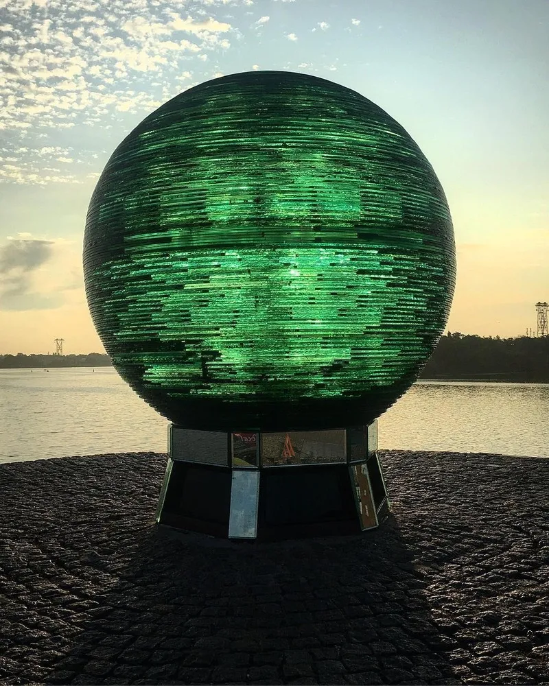 At the Festival Pier on the embankment stands an object that no tourist in Dnipro can miss – a large green "Ball of Wishes". Weighing about two tons, the ball has adorned the pier since 2016 and is mounted on a 7-meter pyramidal base. It has become one of the symbols of the embankment: noticeable from various points, photogenic, and recognizable.