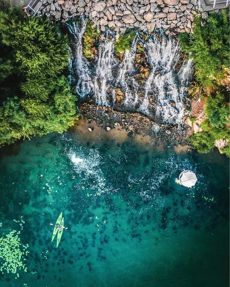 The location is situated next to Ukraine's largest monument to Taras Shevchenko. The waterfall operates seasonally and has become a popular spot for walks: it’s convenient to observe the river, photograph the panorama, and see how the natural relief of the island combines with the modern urban environment.
