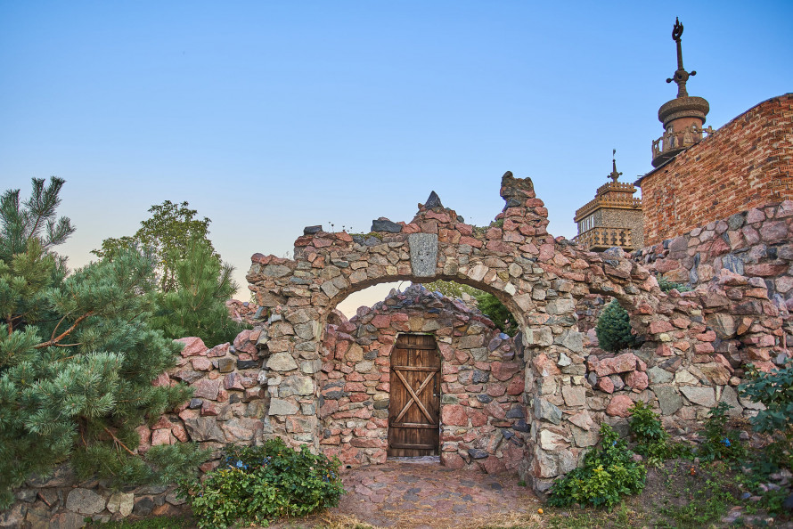 На березі Кам’янського водосховища знаходиться будівля, яка більше схожа на декорації до темного фентезі, ніж на приватний будинок. Це творіння архітектора Леоніда Хляпотури, який робив цей «замок» десятиліттями. Будівля вражає своєю еклектикою: готичні вежі тут сусідять із химерною мозаїкою з битого скла, кераміки та дикого каменю.