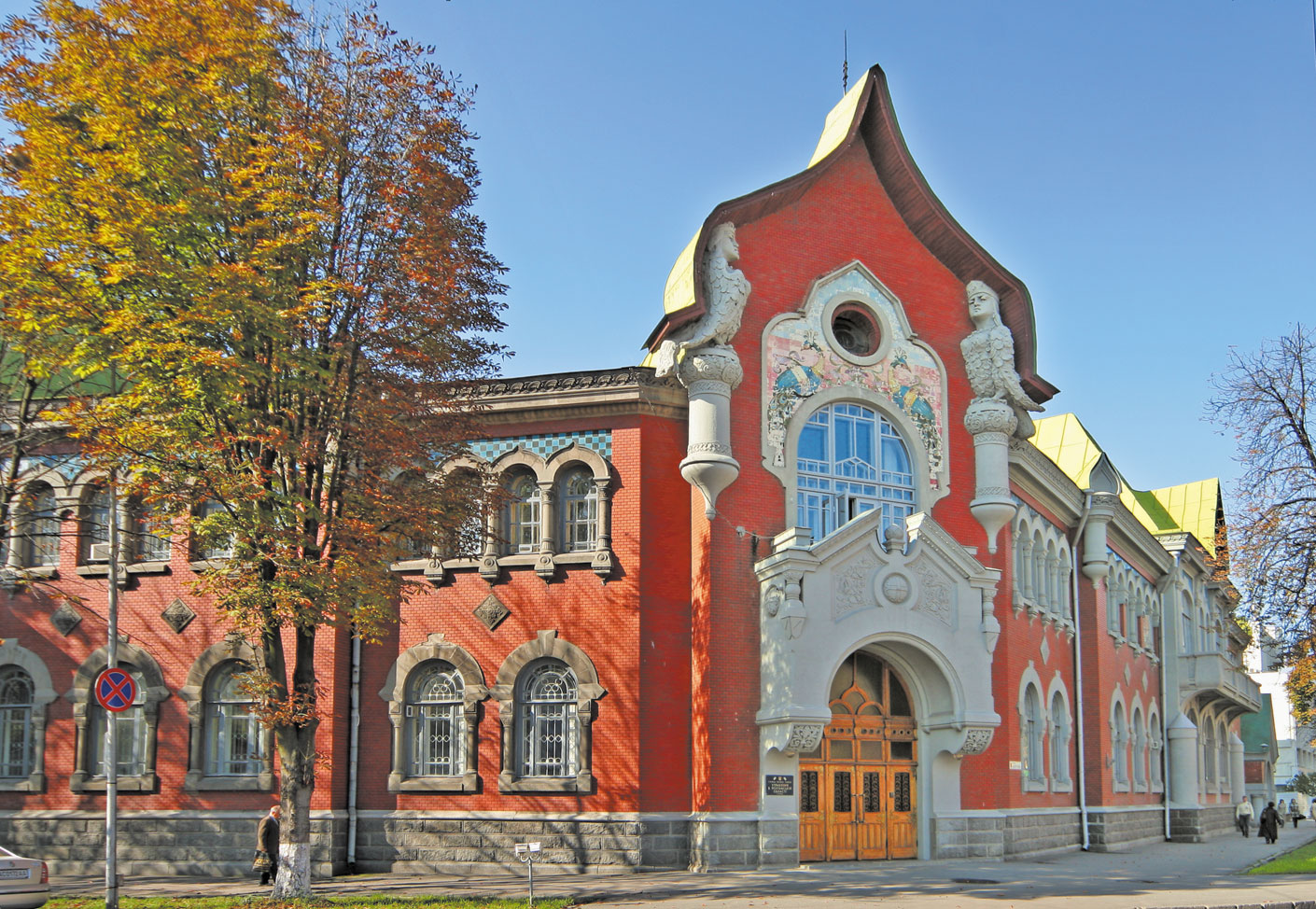 Архітектурно це яскравий приклад «руського стилю» — модерну, що звертається до форм давньої архітектури XVII століття. Фасади рясніють деталями: мозаїчні панно, кольорові керамічні вставки, декоративна скульптура і елегантні металеві елементи створюють атмосферу святковості та величі.