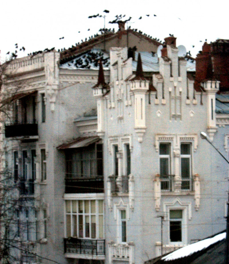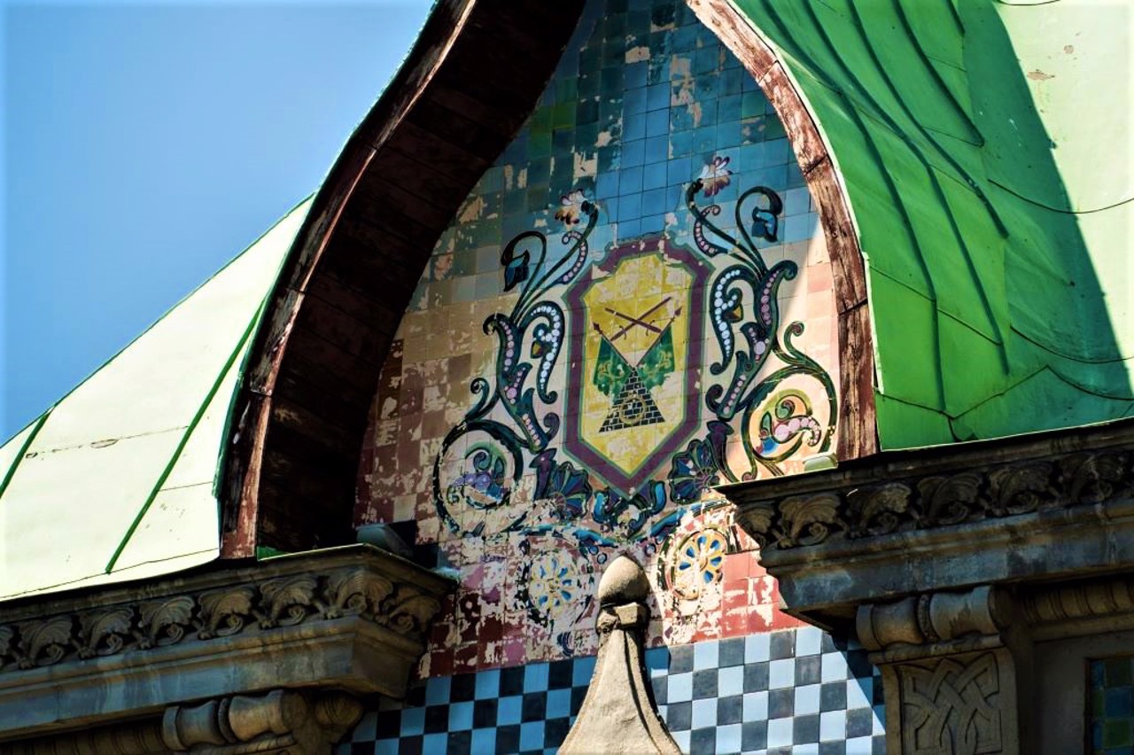 Особливу увагу привертають рельєфні фігури Алконостів на верхній частині фасаду та яскраві зображення Жар-птиць — елементи, які надають будівлі майже міфологічного звучання.